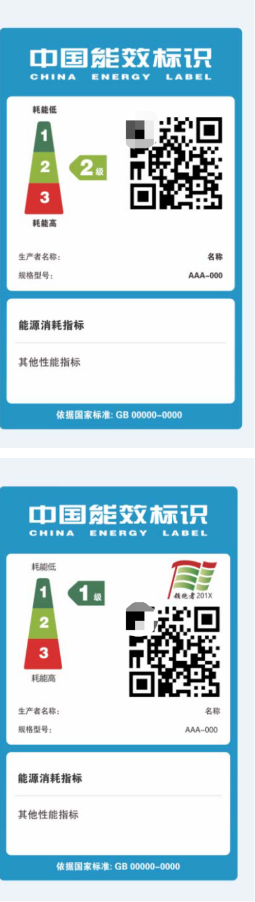 ??????? 能效標識的名稱(chēng)為“中國能效標識”(英文名稱(chēng)為China Energy Label),能效標識應當包括以下基本內容: