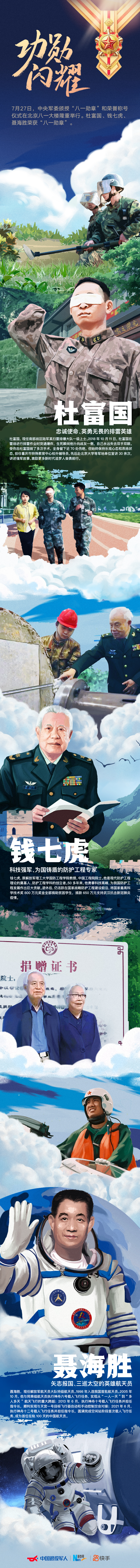 7月27日,中央軍委頒授“八一勛章”和榮譽(yù)稱(chēng)號儀式在北京八一大樓隆重舉行。杜富國、錢(qián)七虎、聶海勝榮獲“八一勛章”。