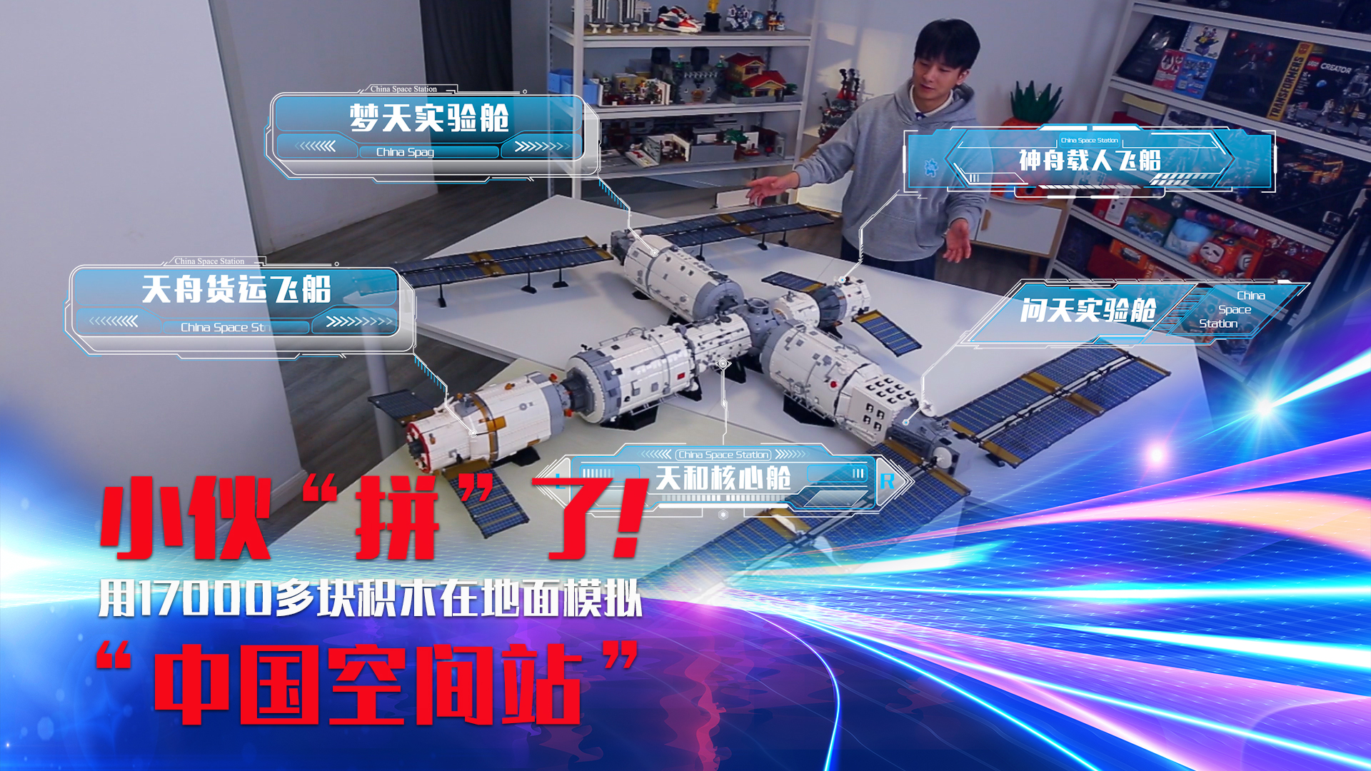 小伙“拼”了!用17000塊積木在地面模擬“中國空間站”