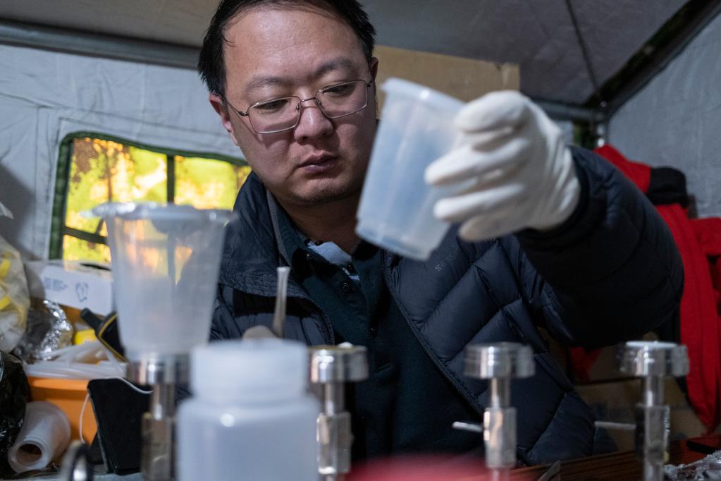 大本營(yíng)夜深人靜時(shí),他們還在抓緊處理采集回來(lái)的樣品??瓶缄爢T劉陽(yáng)說(shuō):“需要在48小時(shí)內完成對水體樣品中細菌、病毒等生物的過(guò)濾和固定?!?/p>