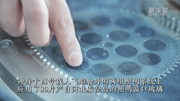 神舟十四號載人飛船艙外的兩組照明系統上,應用了80片產(chǎn)自河北省秦皇島市的照明窗口玻璃,它們?yōu)楹教靻T出艙活動(dòng)及飛船的交會(huì )對接提供有力保障。