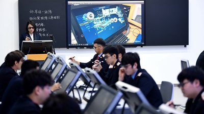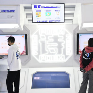 2022年11月17日,觀(guān)眾在體驗應用于教育方面的智能產(chǎn)品。新華社記者 張端 攝