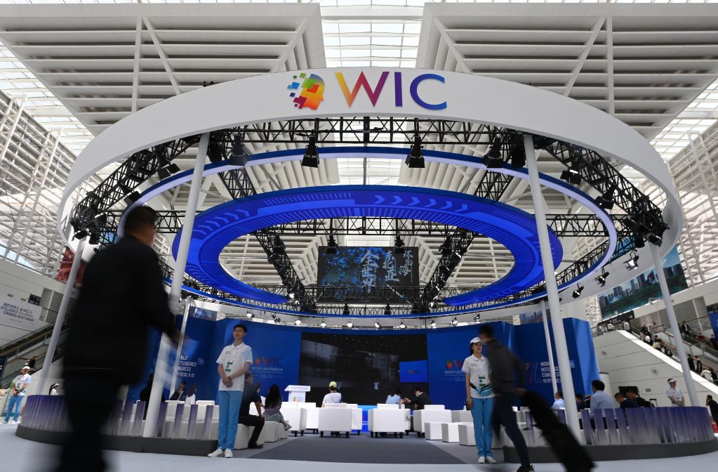 這是5月18日在國家會(huì )展中心(天津)拍攝的第七屆世界智能大會(huì )會(huì )場(chǎng)一角。新華社記者趙子碩攝