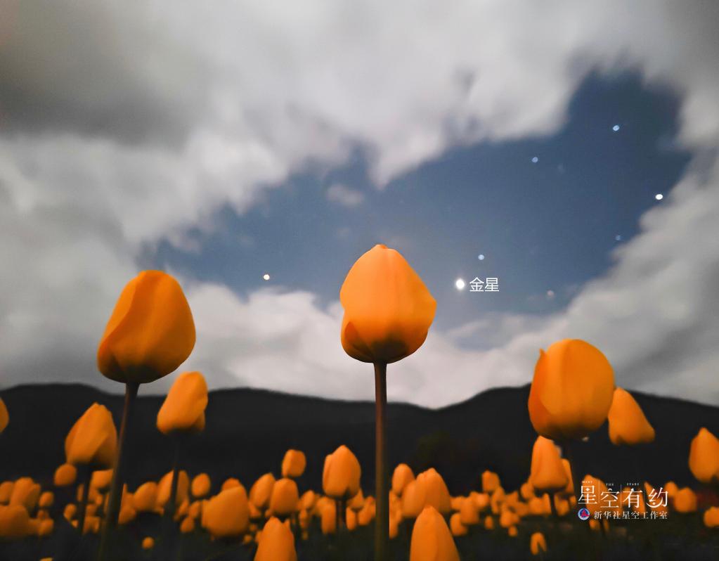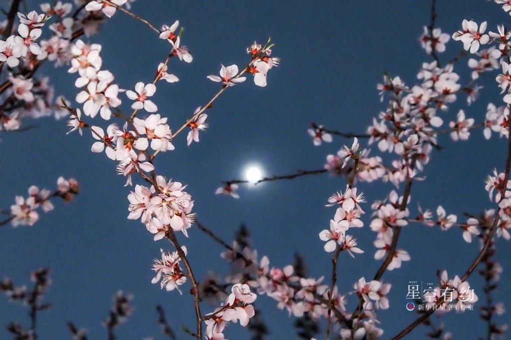 北京市星空攝影愛(ài)好者王俊峰2020年3月23日在房山區拍攝的杏花與金星。(本人供圖)