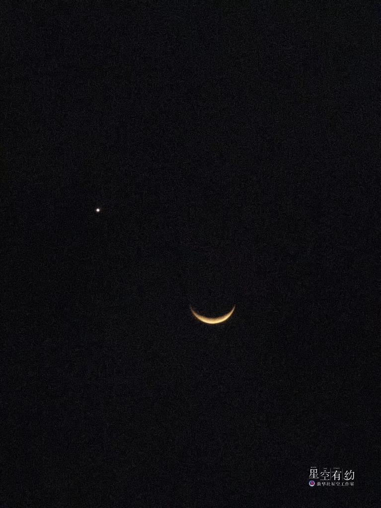 浙江省星空攝影愛(ài)好者張志星2023年4月23日在寧波拍攝的金星伴月。(本人供圖)