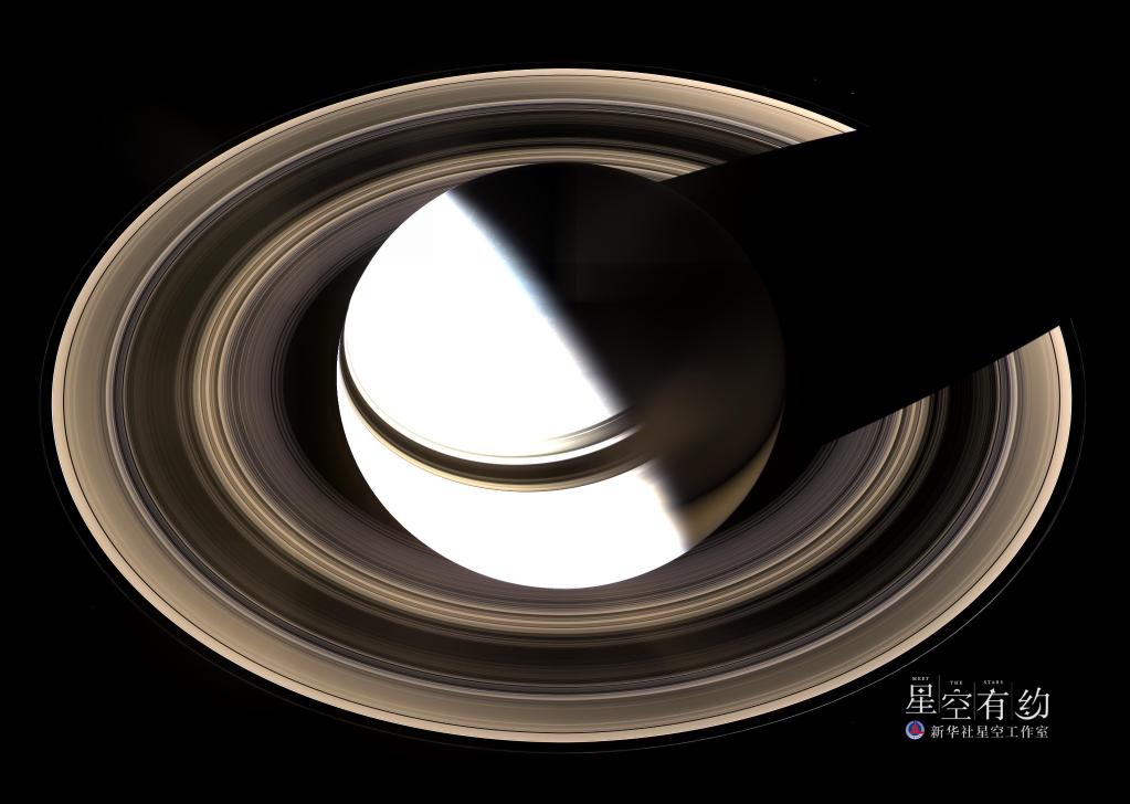 “卡西尼”號探測器拍攝的展示整個(gè)土星及土星環(huán)全貌的圖片。(新華社/法新)