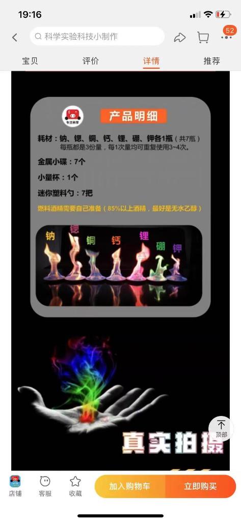 一款用于展示“焰色反應”的商品,因其高溫可能潛藏火災風(fēng)險。(網(wǎng)絡(luò )截圖)