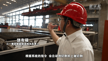在18號工廠(chǎng),一臺泵車(chē)的生產(chǎn)過(guò)程實(shí)際上就是一張鋼板的自動(dòng)化“旅程”。從原材料進(jìn)入工廠(chǎng)開(kāi)始,就有一張專(zhuān)屬“身份證”,由“工廠(chǎng)大腦”全程智能調度,實(shí)現“一張鋼板進(jìn),一臺泵車(chē)出”的智能制造全要素落地。