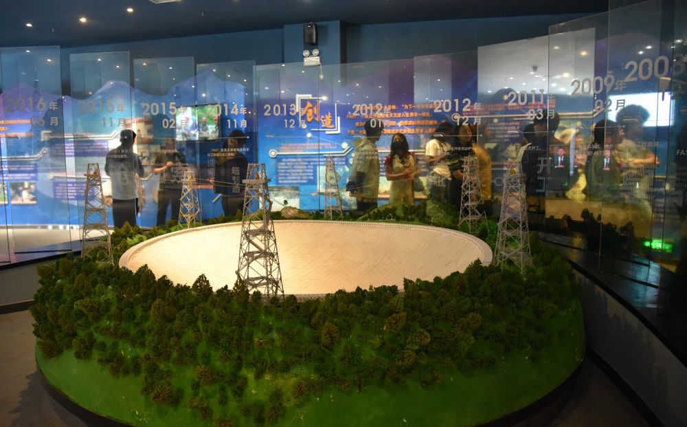 人們在貴州省平塘縣參觀(guān)“中國天眼”模型(2023年6月6日攝)。新華社記者 駱飛 攝