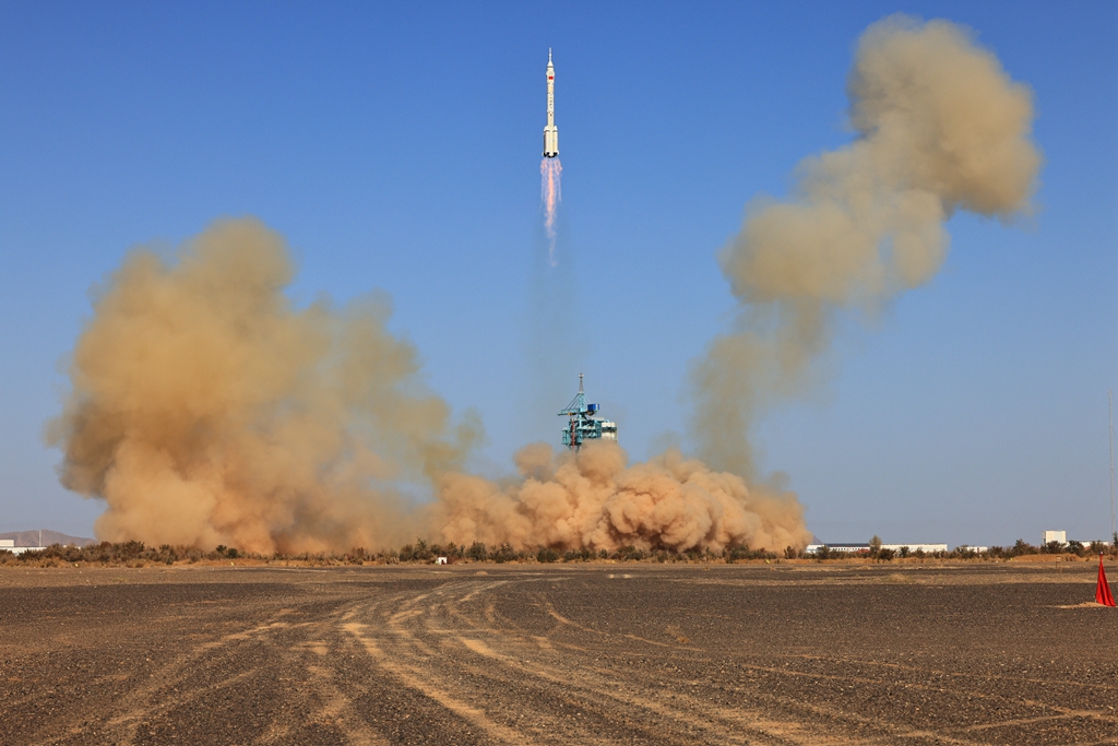 在西北大漠一年中最美的時(shí)節,中國人開(kāi)啟飛向太空新的征程——2023年10月26日11時(shí)14分,長(cháng)征二號F遙十七運載火箭托舉著(zhù)神舟十七號載人飛船,在酒泉衛星發(fā)射中心點(diǎn)火升空,送湯洪波、唐勝杰、江新林3名航天員奔赴“天宮”。