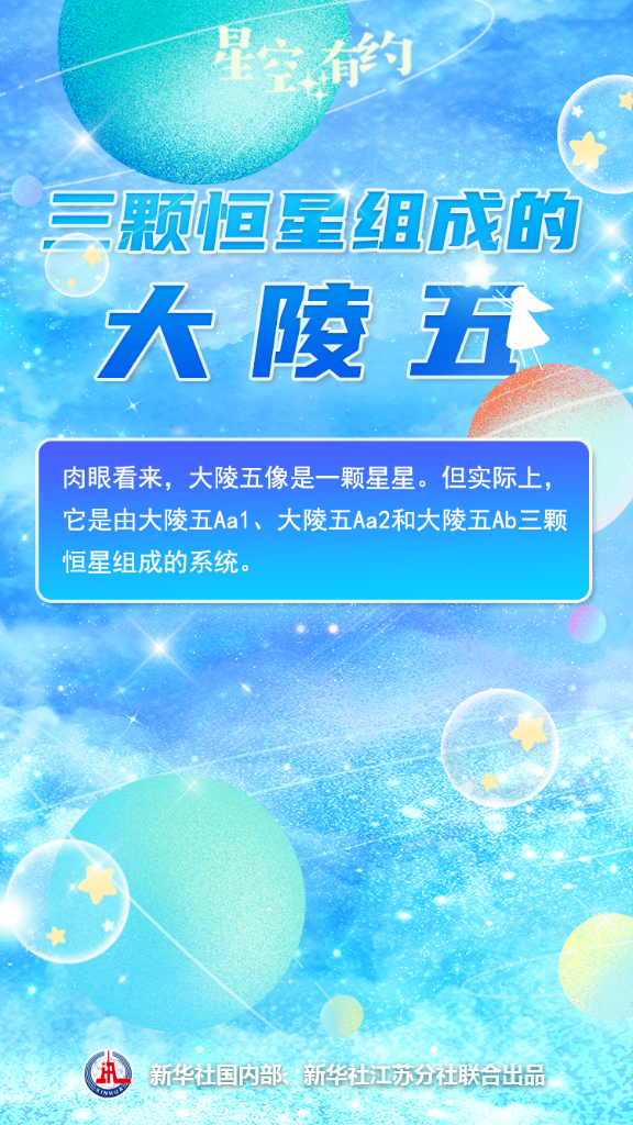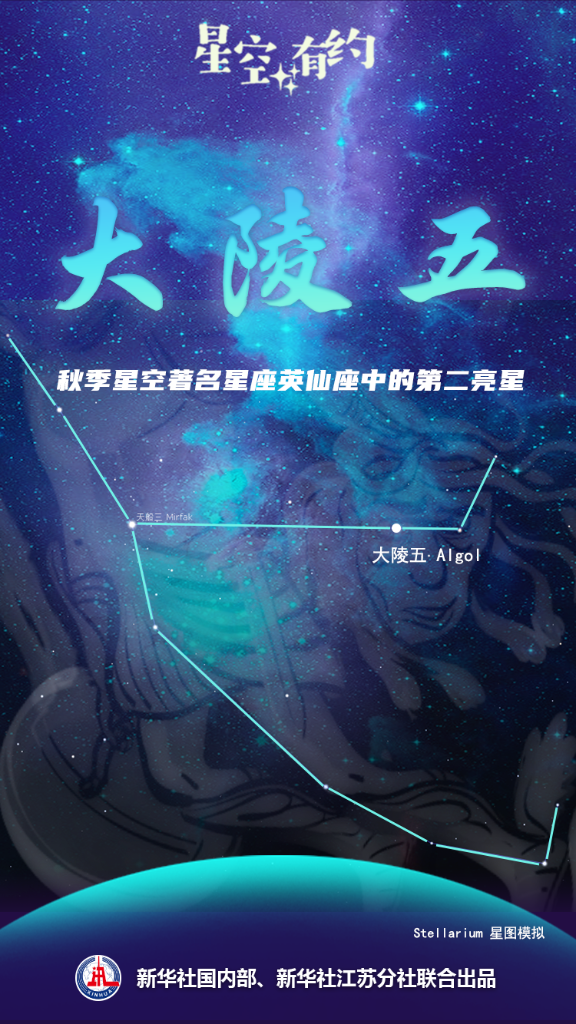 中國科學(xué)院紫金山天文臺科普主管王科超說(shuō),在人們肉眼看來(lái),大陵五只是秋季東北方向天空中一個(gè)遙遠的亮點(diǎn),像是一顆星星。但實(shí)際上,它是由大陵五Aa1、大陵五Aa2和大陵五Ab三顆恒星組成的系統。這三顆恒星被引力“束縛”在一起,共同組成大陵五這個(gè)三合星系統。系統之中三顆星的相對位置還會(huì )發(fā)生變化,并影響到大陵五的亮度。天文學(xué)上把這種亮度時(shí)常變化的恒星或恒星系統稱(chēng)作變星。大陵五也是秋季星空著(zhù)名星座英仙座中的第二亮星。