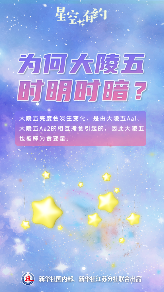 新華社南京11月4日電(記者王玨玢、邱冰清)11月的夜晚,東北方向的夜空之中閃爍著(zhù)“一顆”時(shí)明時(shí)暗的星星。每隔兩三天,它的亮度就會(huì )經(jīng)歷一輪變化,周而復始,就好像會(huì )“眨眼”一樣。這就是著(zhù)名的變星:大陵五。變星是怎么回事?大陵五為什么會(huì )“眨眼”?天文科普專(zhuān)家為您揭秘。