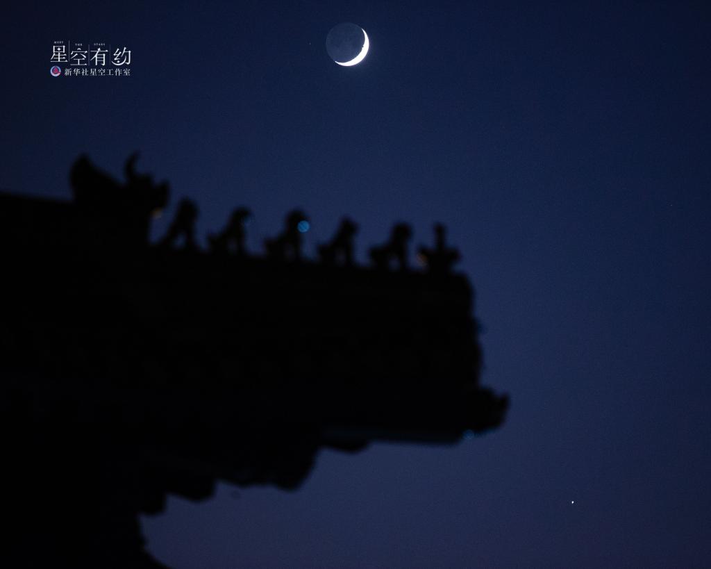 這是2018年10月12日在江蘇南京明故宮遺址公園拍攝的木星合月景觀(guān)。新華社發(fā)(蘇陽(yáng)攝)