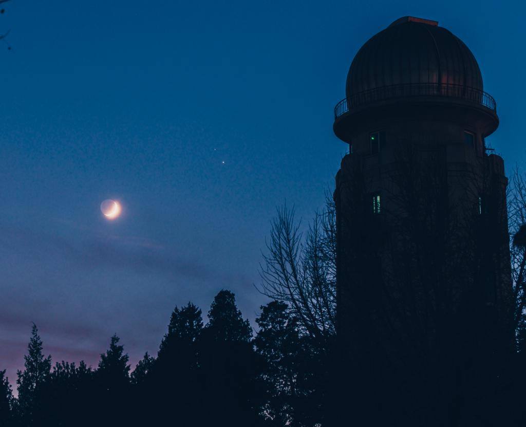 這是2020年12月17日在清華大學(xué)拍攝的土星(右上)木星(右下)伴月。(清華天文協(xié)會(huì )供圖)