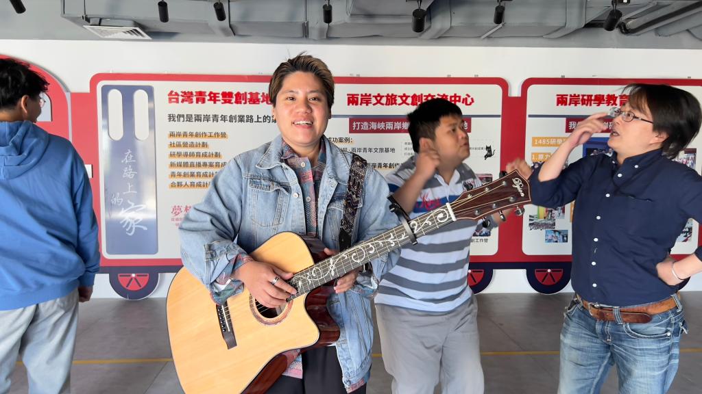 新華社廈門(mén)3月15日電(記者肖逸晨、付敏)“阿嬤對我講,往海的那邊去,有座城隍廟,我的根在那里……”臺灣青年賴(lài)淑珍來(lái)福建廈門(mén)4年多,每每彈唱起這首自創(chuàng )歌曲《城內之歌》,眼中總會(huì )泛起親切柔和的神采。