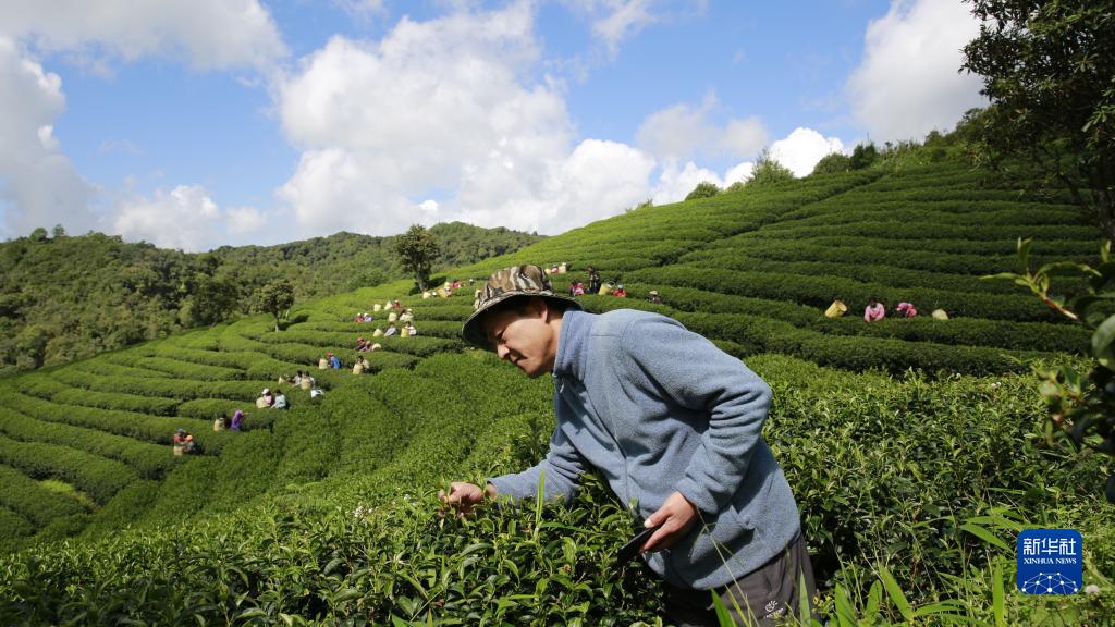 臺灣茶商黃進(jìn)傳在云南普洱采茶(資料照片)。新華社發(fā)