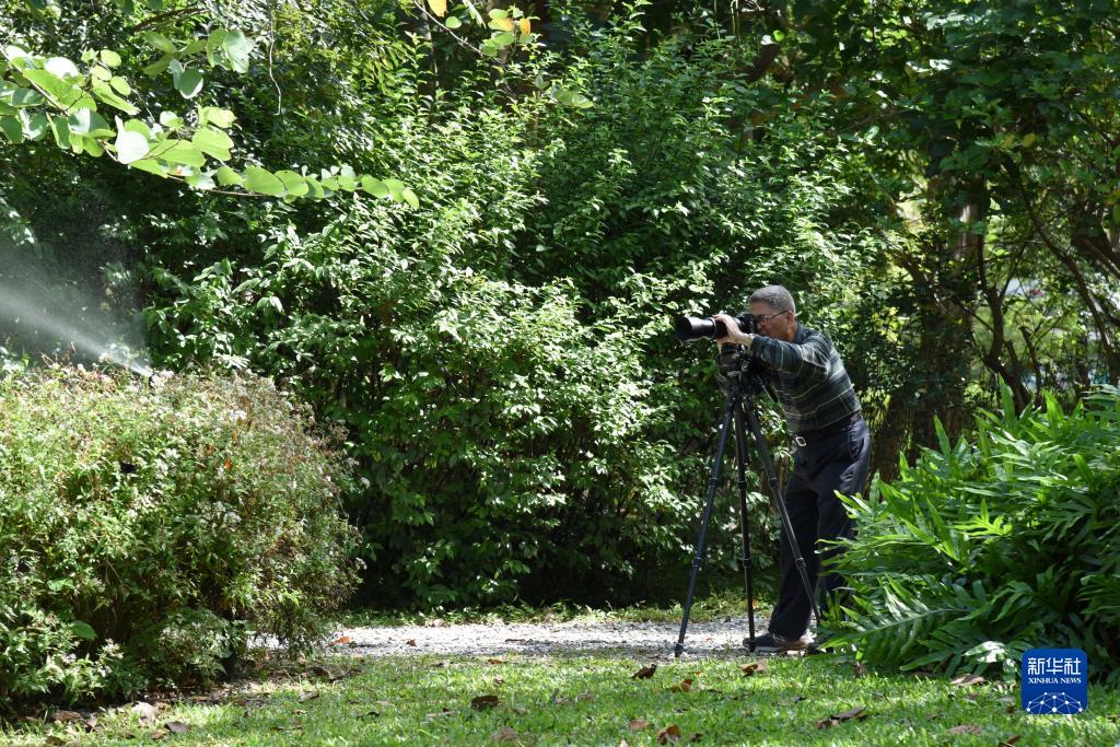 10月23日,一位老年人在臺北大安森林公園內攝影。新華社記者 劉斐 攝