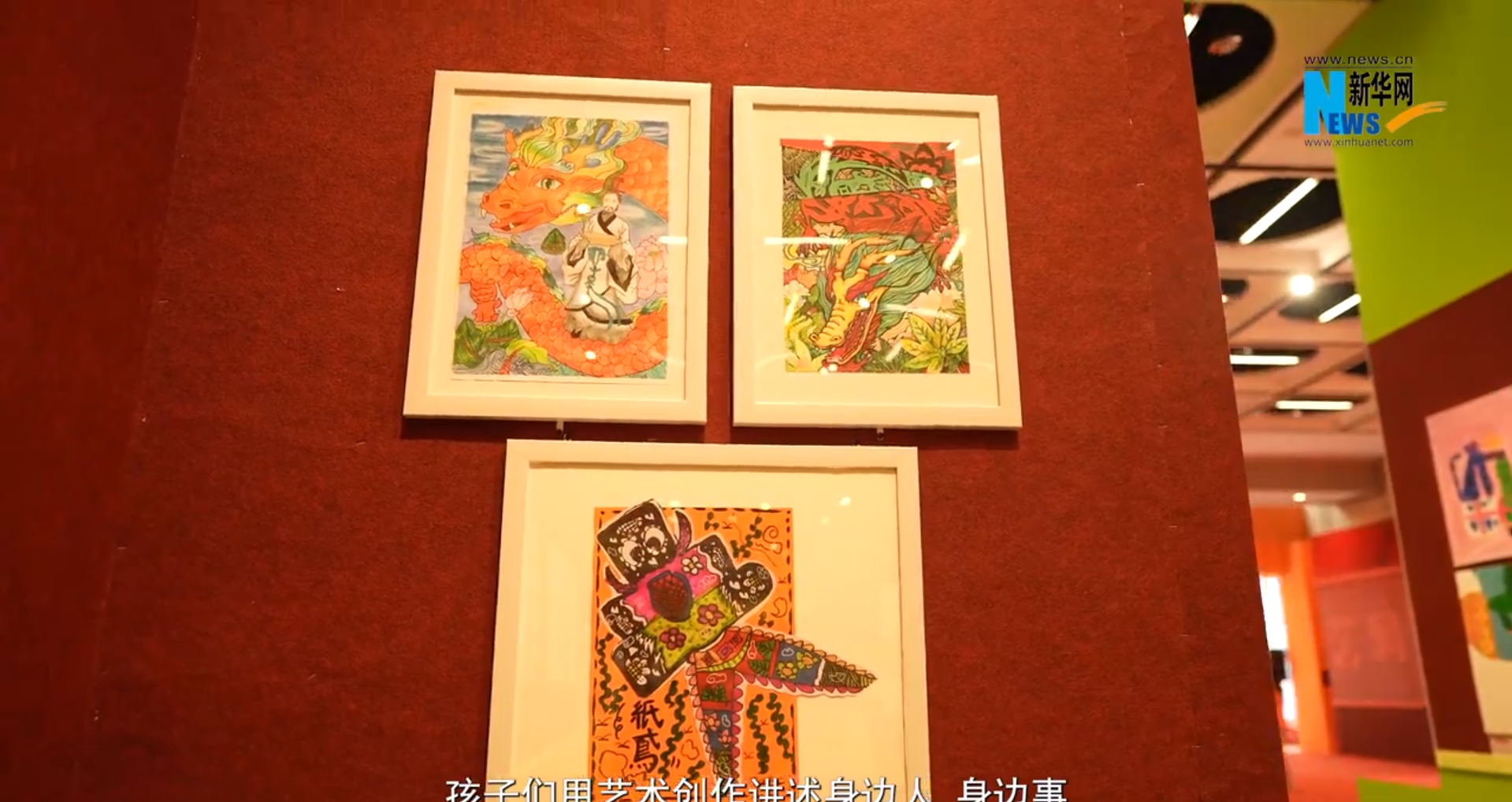 • “這是一幅由內蒙古春蕾女童集體創(chuàng )作的玉米皮貼畫(huà),這上面用的都是當地的玉米皮,展示了中華民族一家親、同心共筑中國夢(mèng)的生動(dòng)畫(huà)面?!敝袊鴭D女兒童博物館內,身著(zhù)彝族傳統服飾的依火伍牛正在向觀(guān)眾講解著(zhù)春蕾女童的繪畫(huà)作品。
