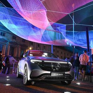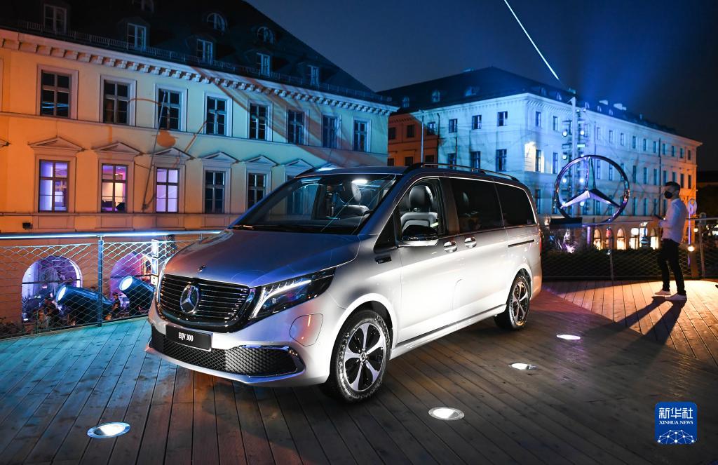 這是9月8日在德國慕尼黑國際車(chē)展梅賽德斯-奔馳汽車(chē)戶(hù)外展區拍攝的一臺梅賽德斯-奔馳EQV 300電動(dòng)汽車(chē)。