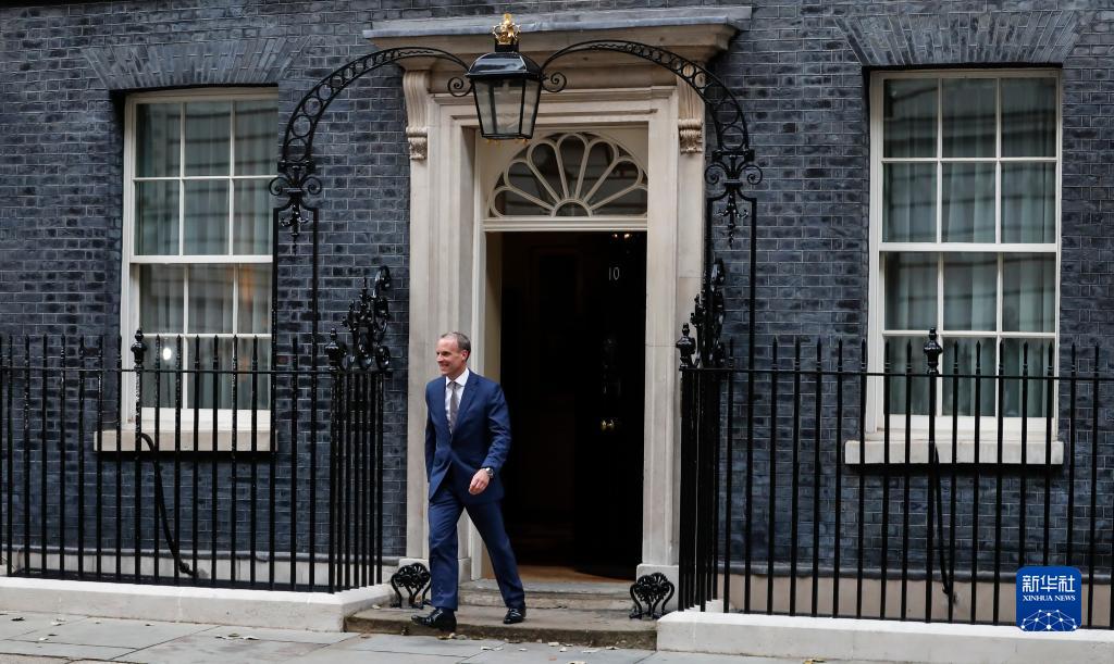 9月15日,新任命英國副首相兼司法大臣拉布離開(kāi)英國倫敦的唐寧街10號首相府。