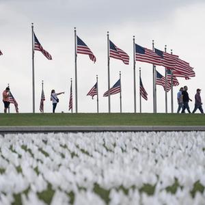 當日起至10月初,超過(guò)66萬(wàn)面白色旗幟擺放在華盛頓紀念碑附近悼念美國超過(guò)66萬(wàn)名新冠逝者。