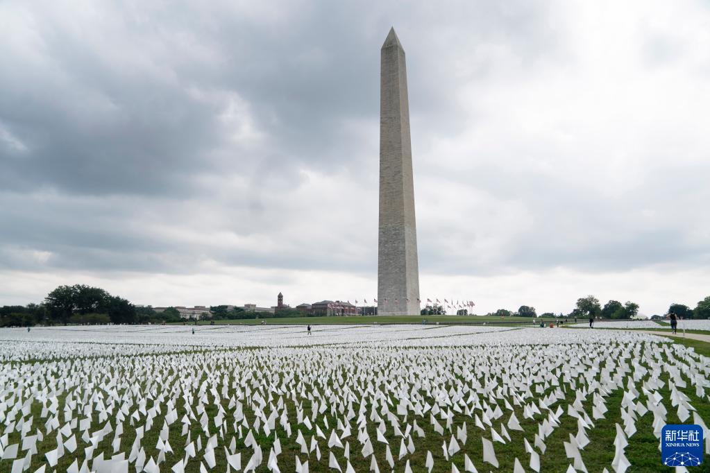 當日起至10月初,超過(guò)66萬(wàn)面白色旗幟擺放在華盛頓紀念碑附近悼念美國超過(guò)66萬(wàn)名新冠逝者。