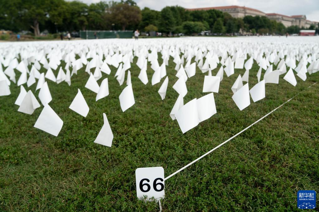 當日起至10月初,超過(guò)66萬(wàn)面白色旗幟擺放在華盛頓紀念碑附近悼念美國超過(guò)66萬(wàn)名新冠逝者。