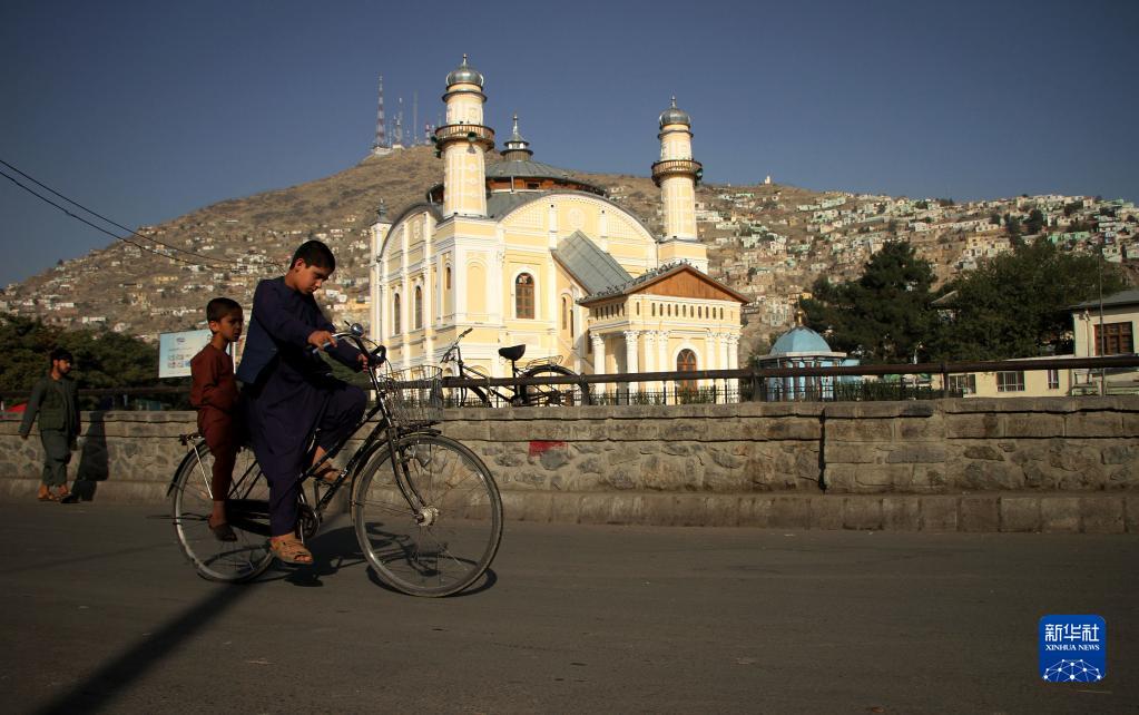 9月15日,一名阿富汗男孩在喀布爾街頭騎車(chē)。