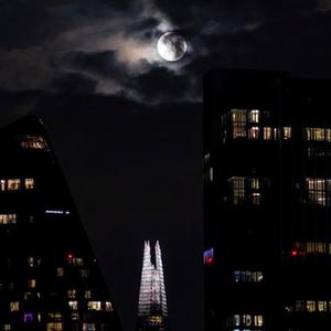 9月21日,滿(mǎn)月在英國倫敦金絲雀碼頭上空升起。