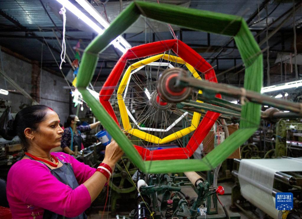 10月10日,一名工人在尼泊爾加德滿(mǎn)都的一處披肩工廠(chǎng)工作。