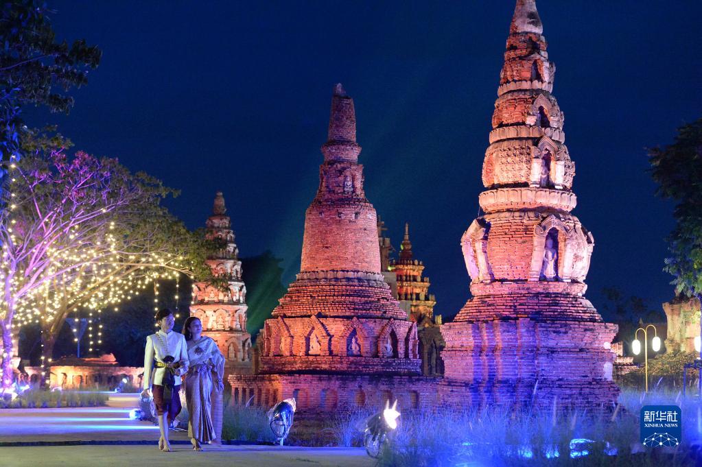 11月8日,游客在泰國北欖府舉行的國際燈籠美食節預展活動(dòng)上游覽。