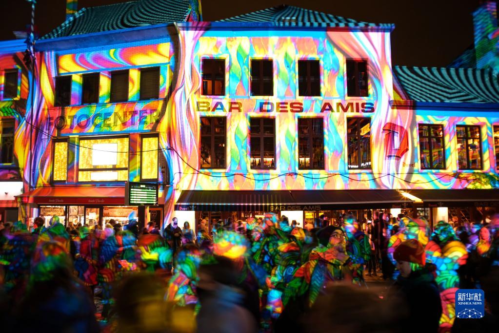 11月11日,人們在比利時(shí)根特燈光節上游覽。