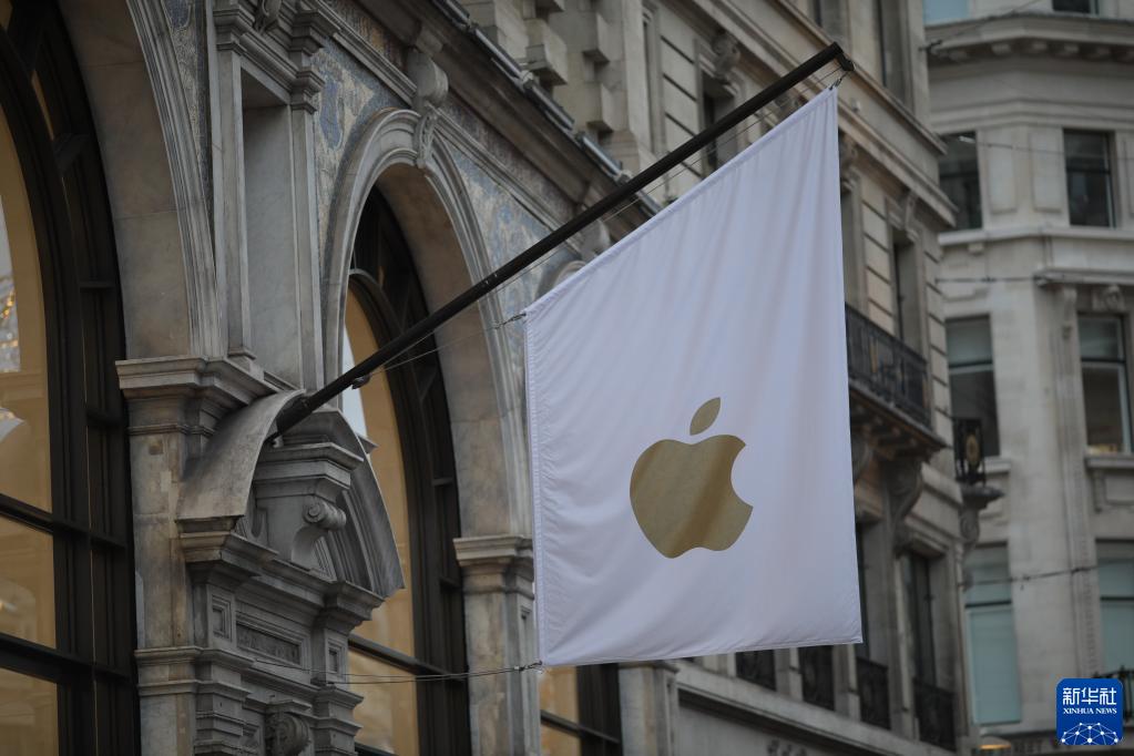這是11月13日在英國倫敦拍攝的蘋(píng)果品牌標識。