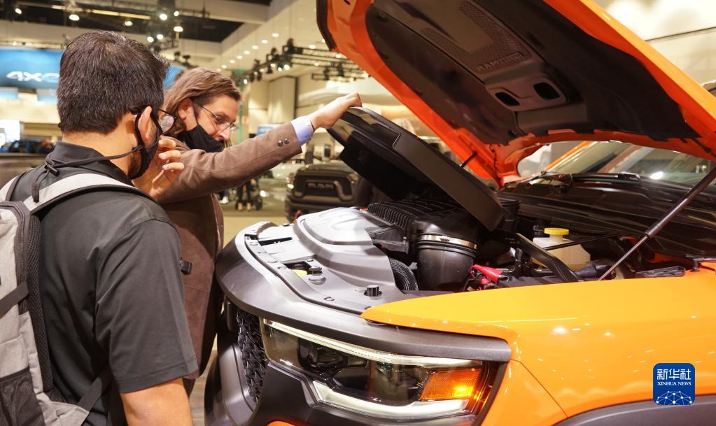 11月17日,人們在美國洛杉磯車(chē)展媒體預展上觀(guān)看參展汽車(chē)。