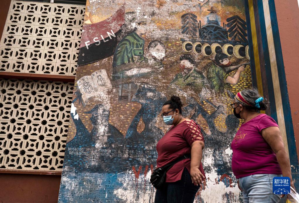 9月19日,人們從尼加拉瓜城鎮圣馬科斯的街頭走過(guò)。