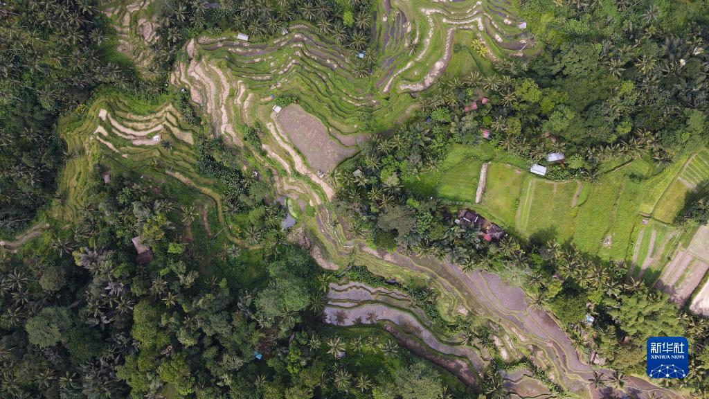 這是12月20日在印度尼西亞巴厘島拍攝的德格拉朗梯田(無(wú)人機拍攝)。
