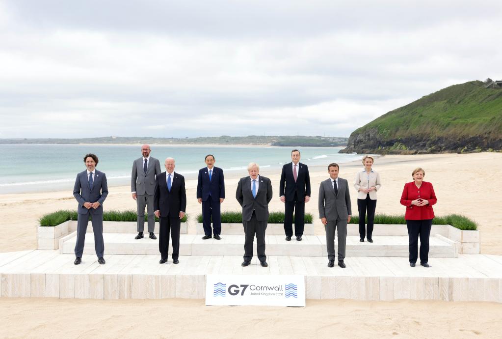 6月11日,參加七國集團峰會(huì )的領(lǐng)導人在英國康沃爾郡卡比斯貝合影。(新華社發(fā),英國首相府供圖)