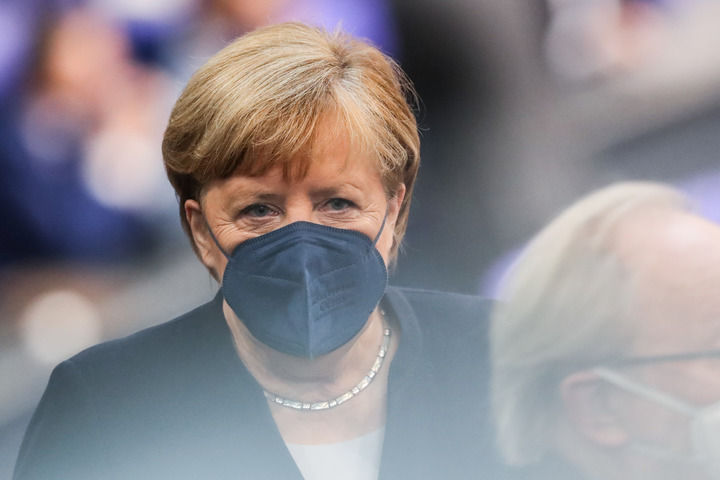 12月8日,在德國首都柏林的國會(huì )大廈,即將離任的德國總理默克爾在投票議程中。新華社記者 單宇琦 攝