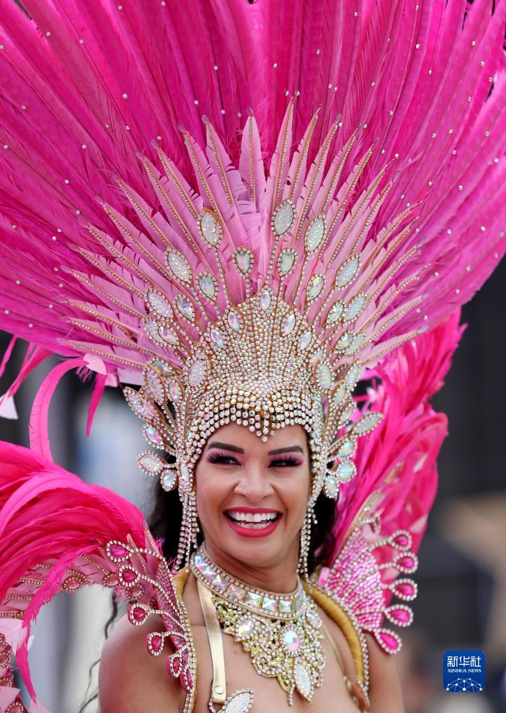 2022年1月1日,一名舞者在英國倫敦參加新年游行活動(dòng)。