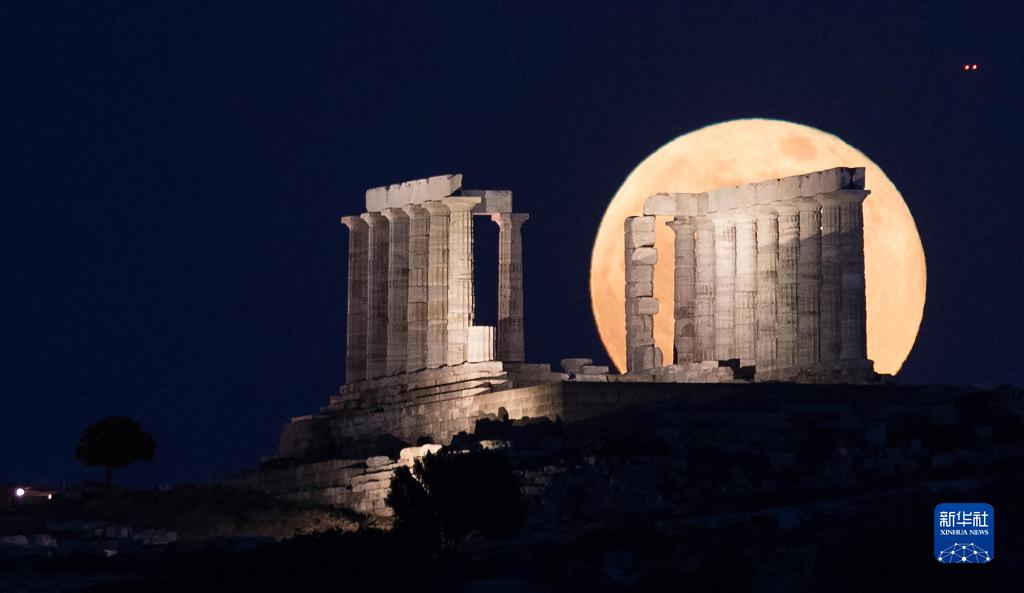2021年5月26日,“超級月亮”出現在希臘蘇尼翁的海神廟遺址上空。