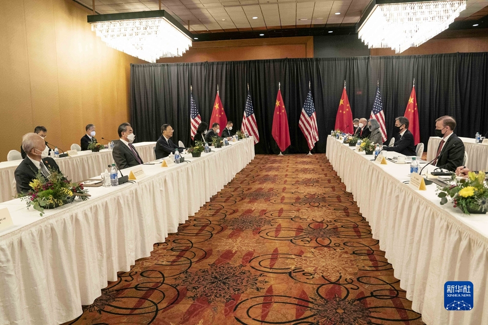 2021年3月18日,中共中央政治局委員、中央外事工作委員會(huì )辦公室主任楊潔篪、國務(wù)委員兼外長(cháng)王毅在安克雷奇同美國國務(wù)卿布林肯、總統國家安全事務(wù)助理沙利文舉行中美高層戰略對話(huà)。楊潔篪、王毅在中美高層戰略對話(huà)開(kāi)場(chǎng)白中闡明中方有關(guān)立場(chǎng)。