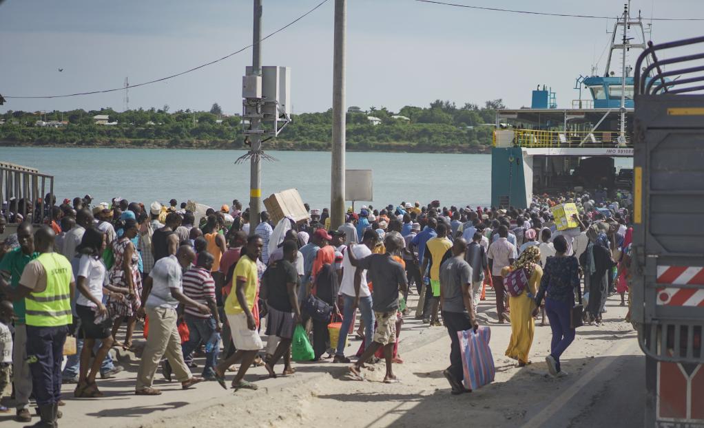 日前,記者一行來(lái)到利科尼浮橋。15時(shí)許,當日進(jìn)出港的船只均通行完畢,浮橋開(kāi)始合攏。16時(shí)許,從蒙巴薩島返回利科尼的行人逐漸多了起來(lái)。