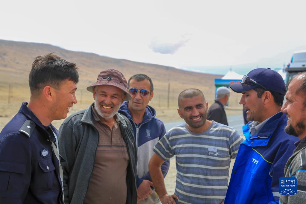 2019年6月11日,位于新疆塔什庫爾干塔吉克自治縣的卡拉蘇出入境邊防檢查站的民警向塔吉克斯坦司機介紹出入境相關(guān)事宜。新華社發(fā)(黃歡 攝)