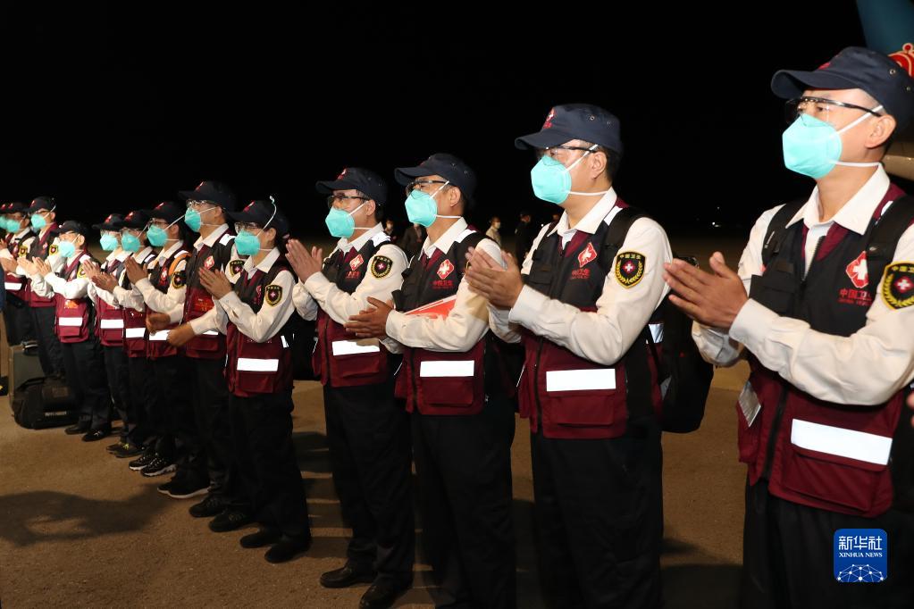 2020年5月24日凌晨,中國政府聯(lián)合工作組抵達塔吉克斯坦首都杜尚別國際機場(chǎng)。同機抵達的還有中國政府對塔第三批抗疫援助物資,包括核酸檢測試劑盒、呼吸機、醫用口罩等。新華社發(fā)(中國駐塔吉克斯坦使館供圖)