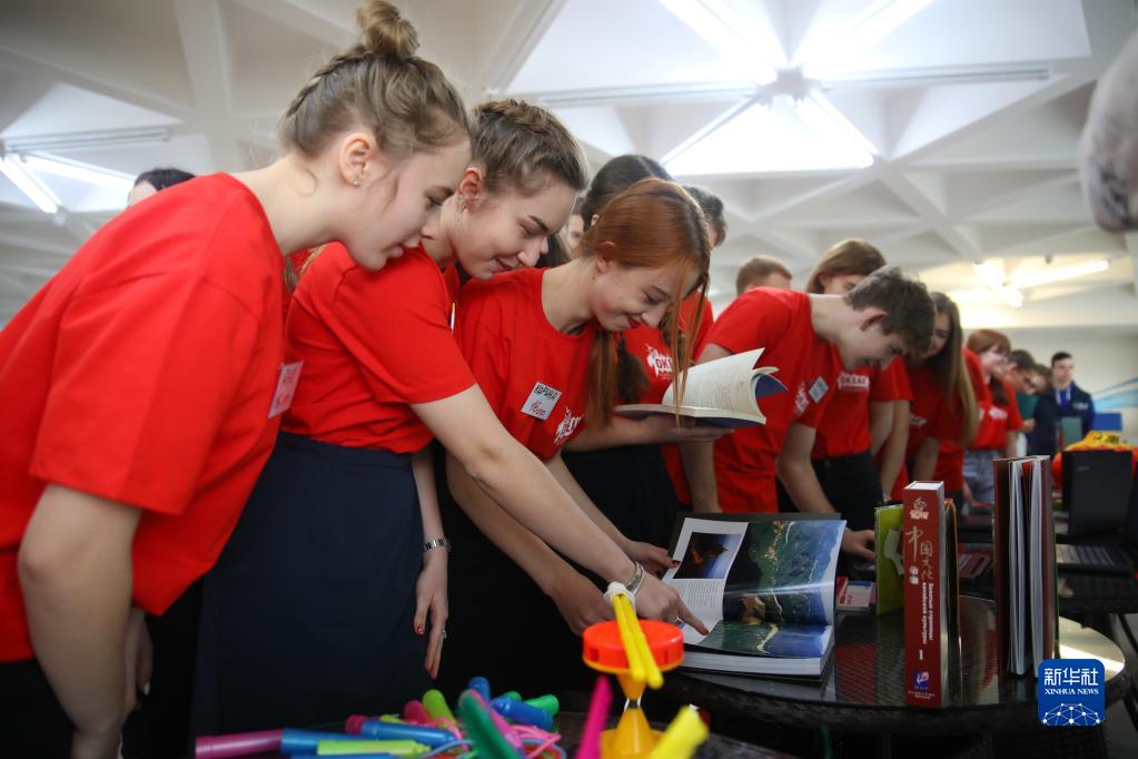 2019年1月16日,在俄羅斯符拉迪沃斯托克的“海洋”全俄兒童中心,俄羅斯青年觀(guān)看中國政府贈送的禮物。新華社記者 吳剛 攝