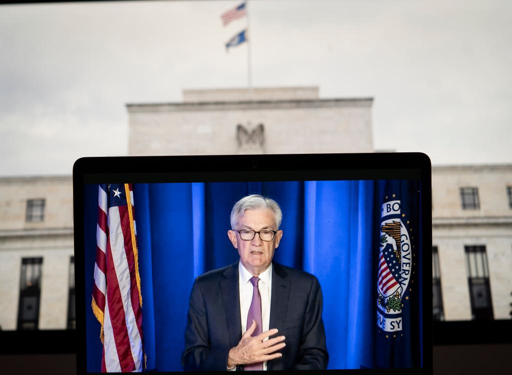 3月16日拍攝的視頻畫(huà)面顯示,美聯(lián)儲臨時(shí)主席鮑威爾在華盛頓出席線(xiàn)上新聞發(fā)布會(huì )。(新華社記者劉杰攝)