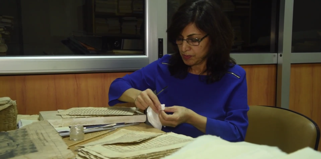 正在修復古籍的拉賈·拉杰哈。(視頻截圖)