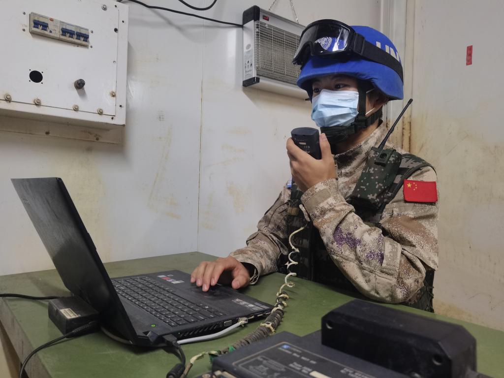 通過(guò)聯(lián)合國對講機情況通報得知,梅納卡營(yíng)地聯(lián)合國民事區的板房被武裝分子的火箭彈命中。面對緊急情況,楊哲馬上設置好隨身攜帶的電臺,第一時(shí)間將情況報告給工兵分隊副分隊長(cháng)王猛,并將“立即啟動(dòng)應急預案”的指令迅速傳達給各個(gè)點(diǎn)位。