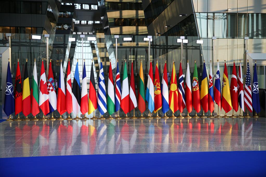 這是2022年3月24日在比利時(shí)布魯塞爾的北約總部拍攝的旗幟。新華社記者鄭煥松攝