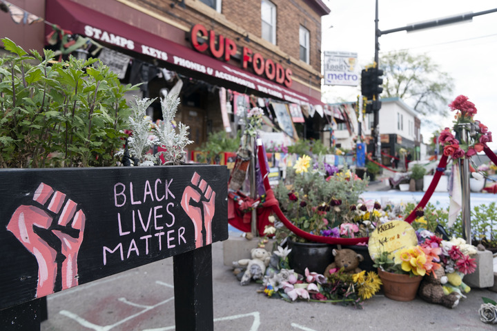 2020年5月25日,一家便利店外,弗洛伊德胸口朝下被按在地上。白人警察德雷克·肖萬(wàn)用膝蓋抵住他的后頸,超過(guò)9分鐘。弗洛伊德斷斷續續懇求多次,直至陷入昏迷。這段視頻一經(jīng)曝光,在全美乃至全球廣泛傳播,見(jiàn)者悚然。